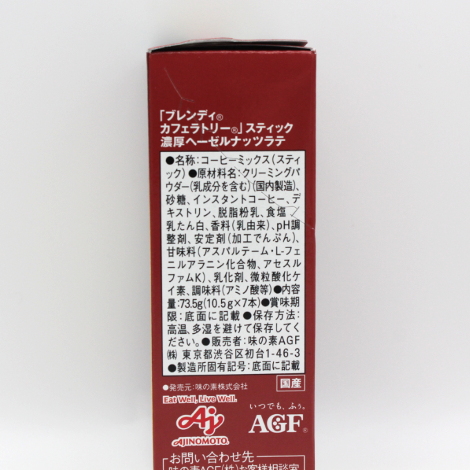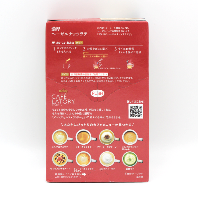 泡立ちが特長の、高品質な人気のインスタントスティックシリーズ「ブレンディ®カフェラトリー®」より「濃厚ヘーゼルナッツラテ」です。