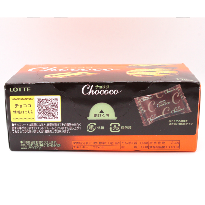 サクサク軽い食感が楽しめるラングドシャタイプの薄焼きクッキーとまろやかなチョコレートの絶妙なハーモニーが楽しめるチョココです。