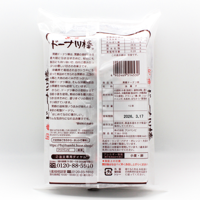 フジバンビ 黒糖ドーナツ棒12本入【熊本】