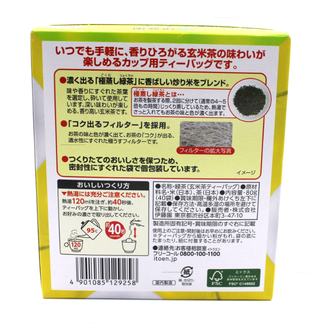 「香り高く深い味わい」の徳用サイズのカップ用ティーバッグ玄米茶です。