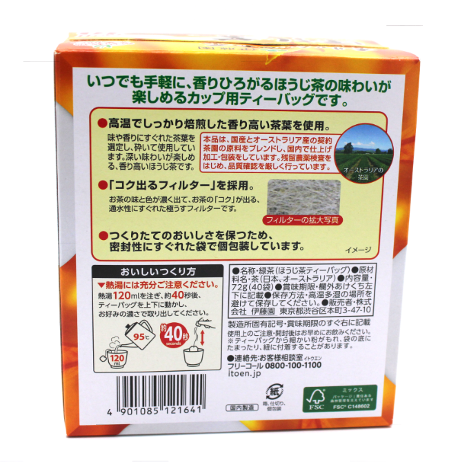 「香り高く深い味わい」の徳用サイズのカップ用ティーバッグほうじ茶です。